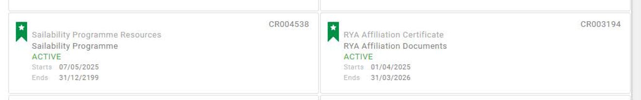 These can be found by clicking on the credentials tile and filtering by either RYA documents or RYA branding.