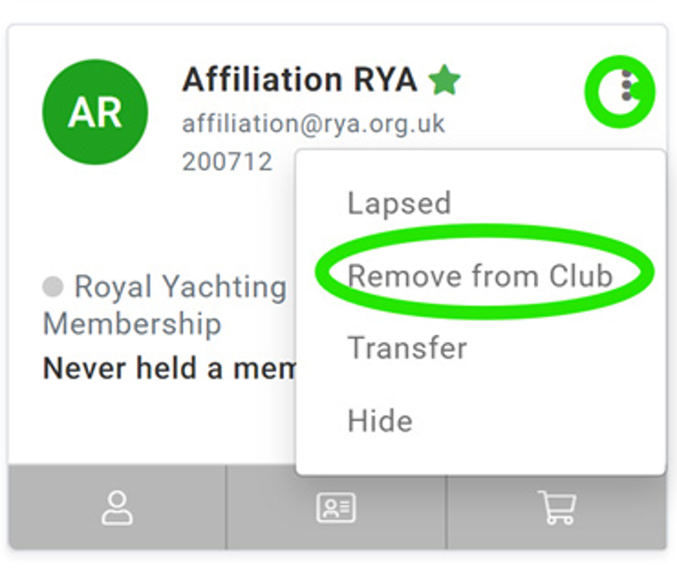 4. Changing current contact details. If the person is no longer undertaking any role on your committee, click on the three dots on the top right corner of their membership card and click on ‘Remove from Club’.