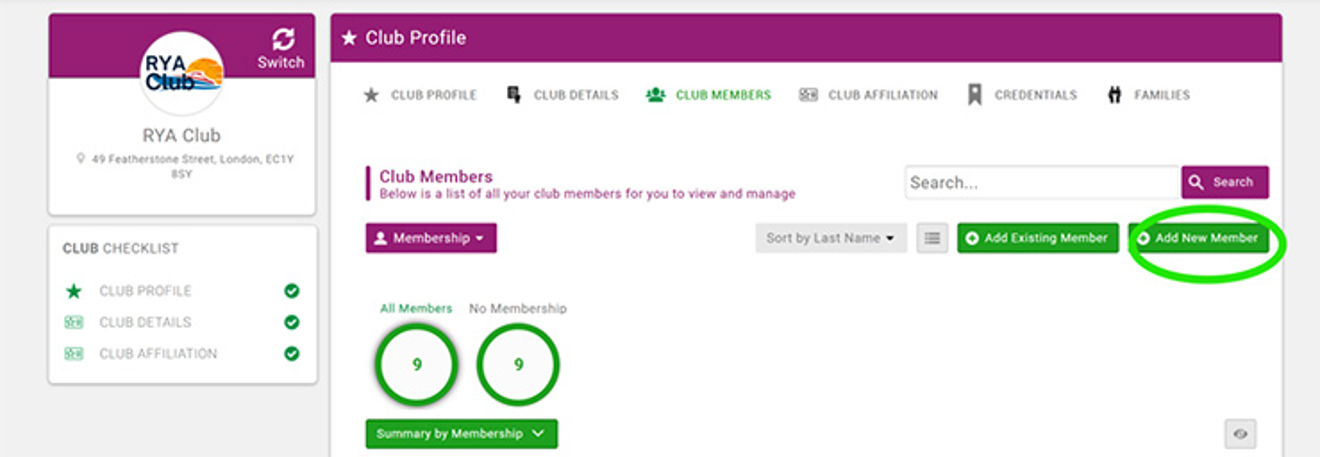 3. New members can then be added by clicking on the ‘Add new member’ button and completing the contact details