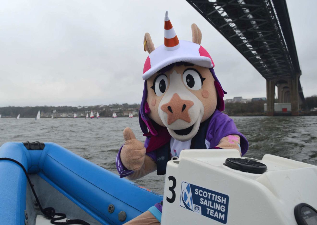 Fittingly, Glasgow 2026 Commonwealth Games mascot Finnie joined the action, bringing her joyful energy to the boat park. Finnie even headed afloat to support the race committee - waving flags, cheering on competitors and lifting spirits across the fleets.