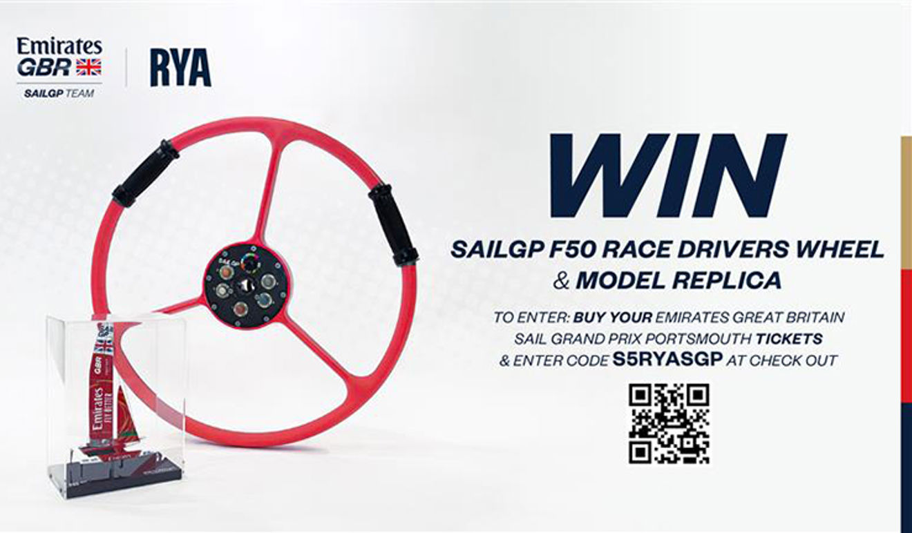 Enter the code at checkout to be entered into a prize draw to win a SailGP F50 race driver’s wheel and a model replica F50.