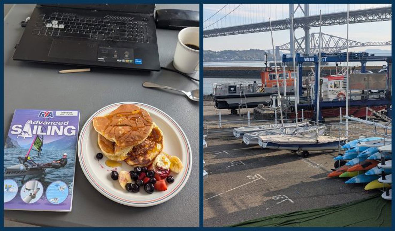 “Not a bad view for morning coffee. On day 2 of my Senior Instructor course at Port Edgar. Hoping the dolphins are joining the course again too today!