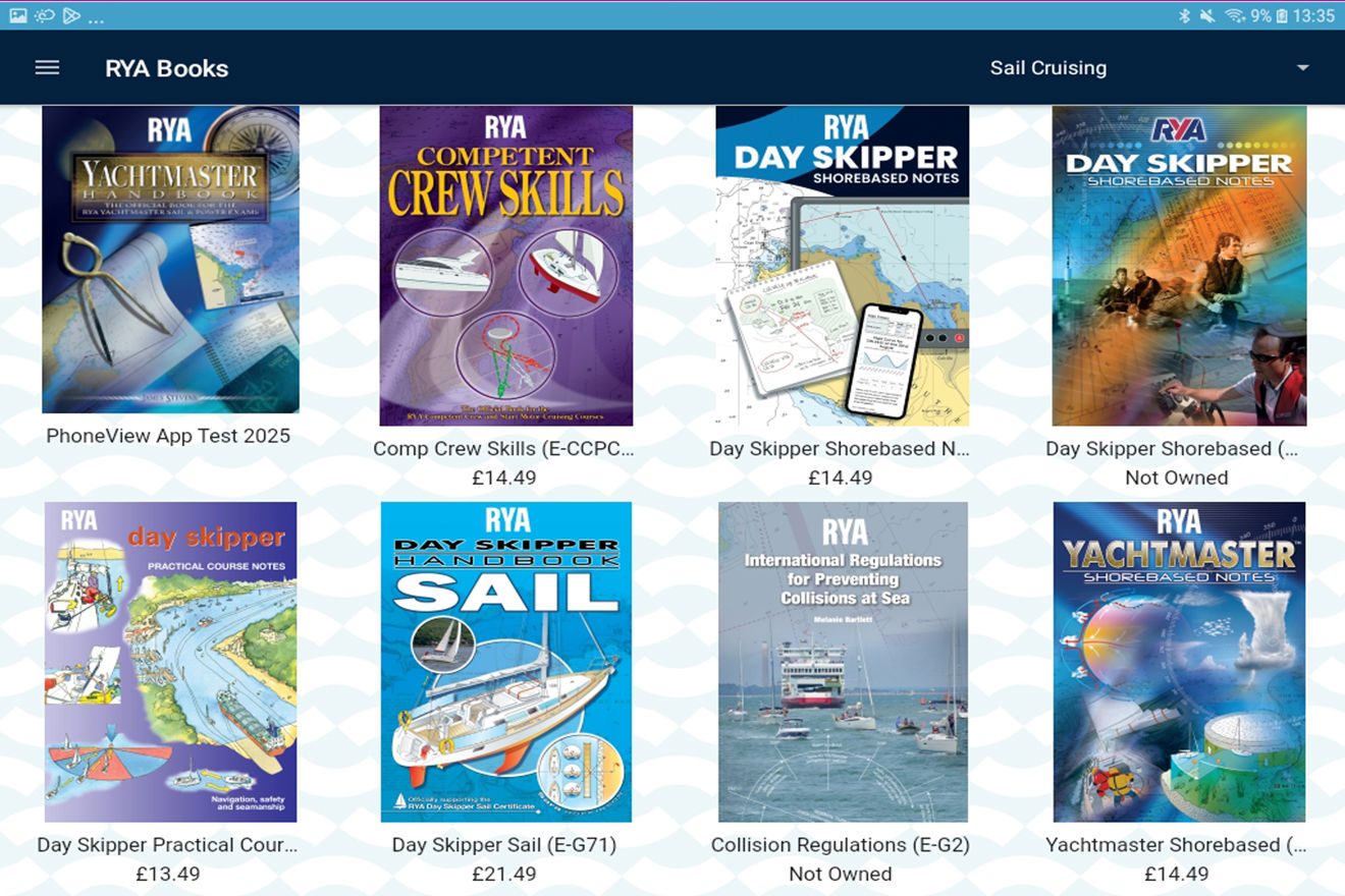 We ask all customers to download the RYA Books app on their chosen device before making a purchase. This ensures that the app is supported on your device and that you're happy with the format of our eBooks.